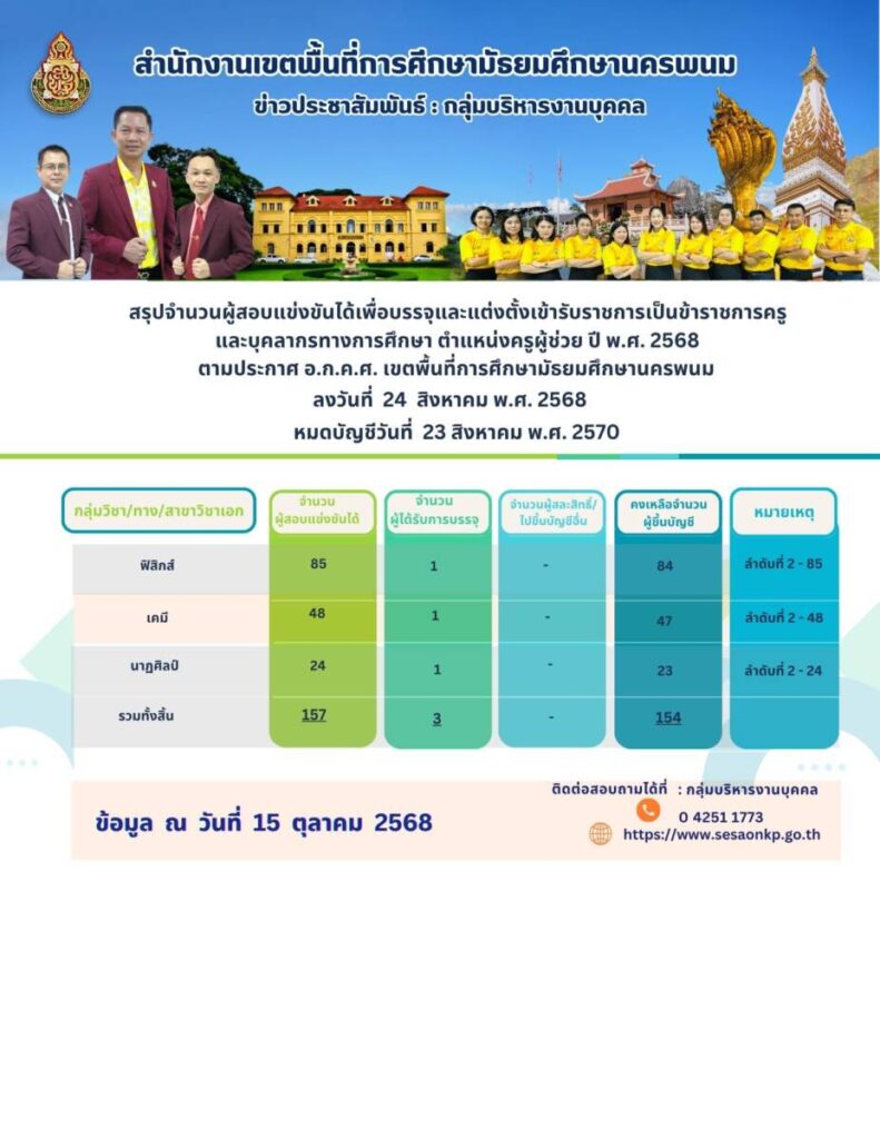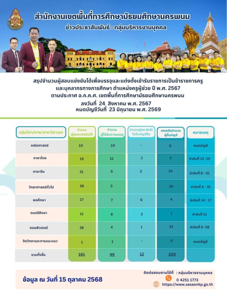 บัญชีสรุปจำนวนการเรียกบรรจุและแต่งตั้ง “ครูผู้ช่วย”