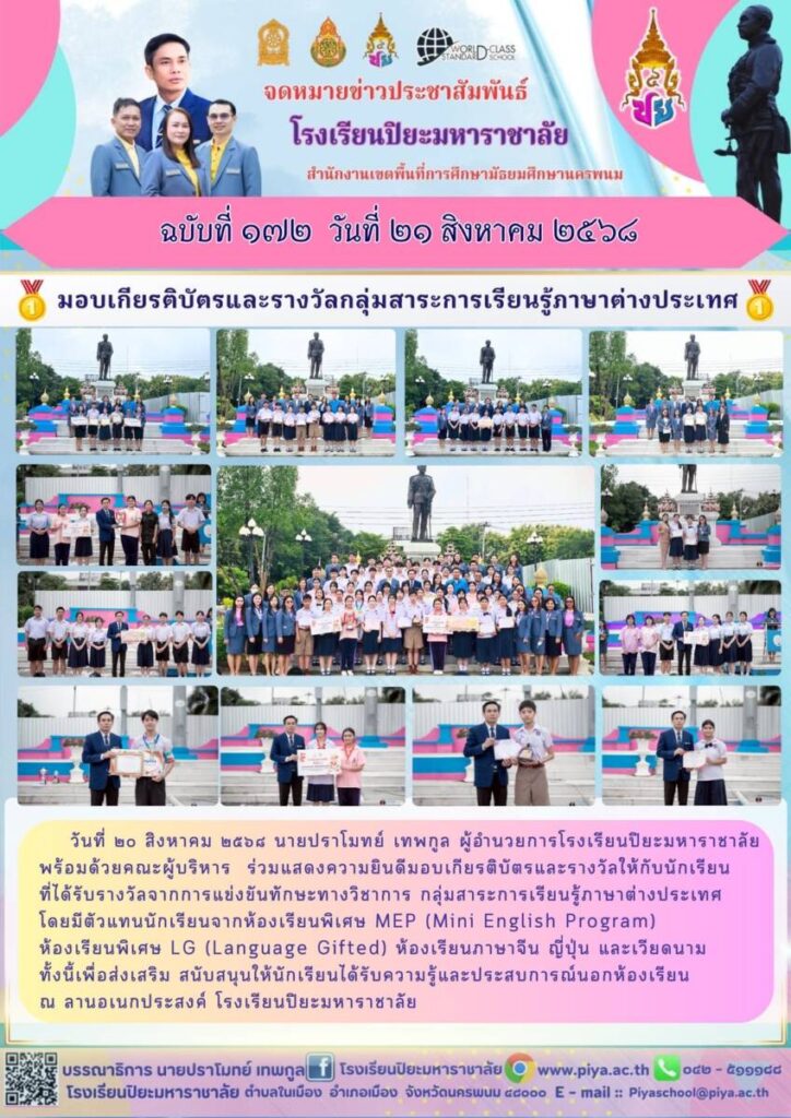 ปิยะมหาราชาลัย ฉบับที่ 172/68 / จดหมายข่าวโรงเรียนในสังกัด / By โรงเรียนปิยะมหาราชาลัย / 29 สิงหาคม 2025 จำนวนคนดู : 0
