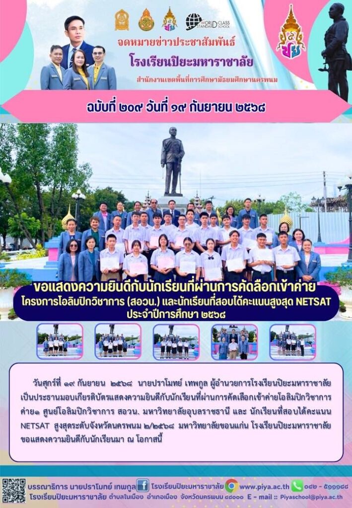 ปิยะมหาราชาลัย ฉบับที่ 209/68 / จดหมายข่าวโรงเรียนในสังกัด / By โรงเรียนปิยะมหาราชาลัย / 22 กันยายน 2025 จำนวนคนดู : 0