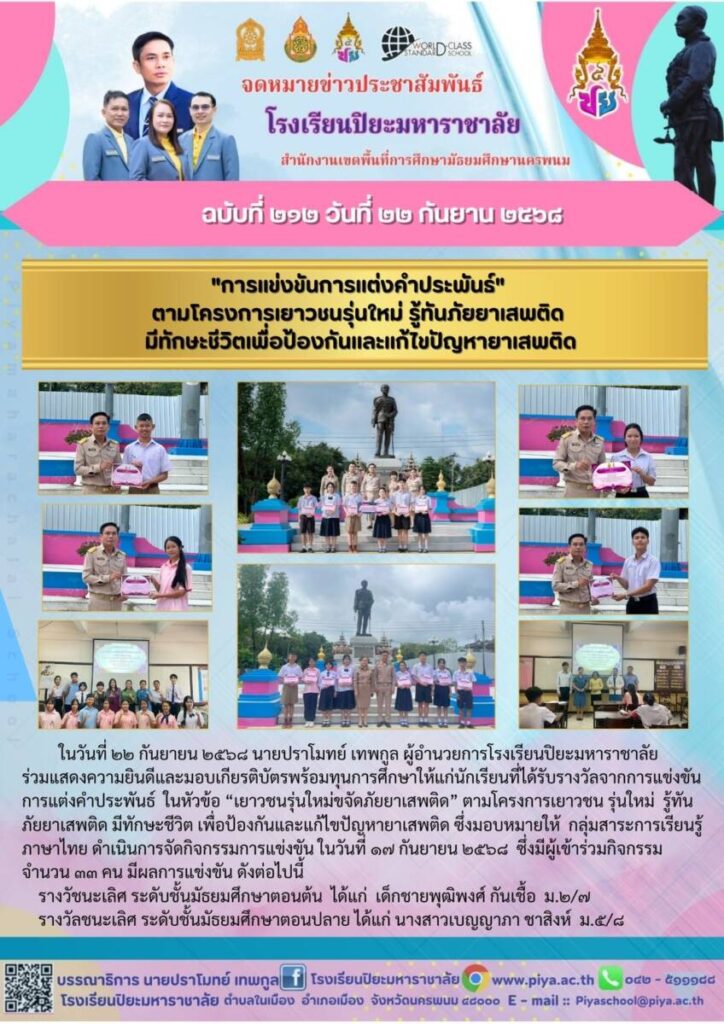 ปิยะมหาราชาลัย ฉบับที่ 212/68 / จดหมายข่าวโรงเรียนในสังกัด / By โรงเรียนปิยะมหาราชาลัย / 24 กันยายน 2025 จำนวนคนดู : 0