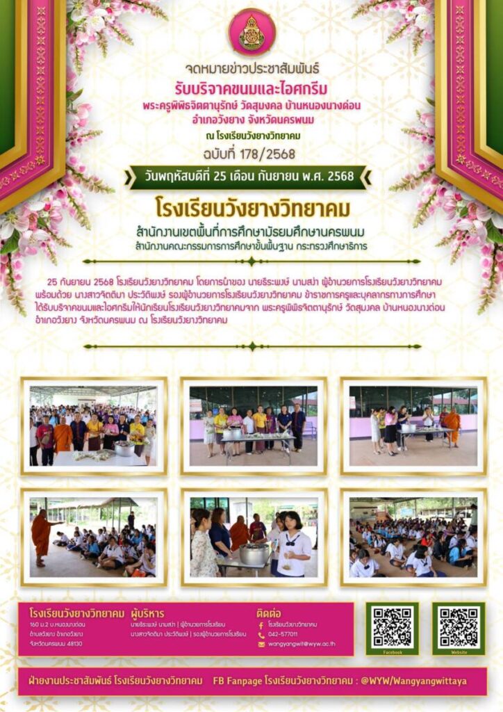 โรงเรียนวังยางวิทยาคม ฉบับที่ 178/2568