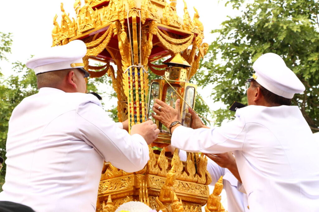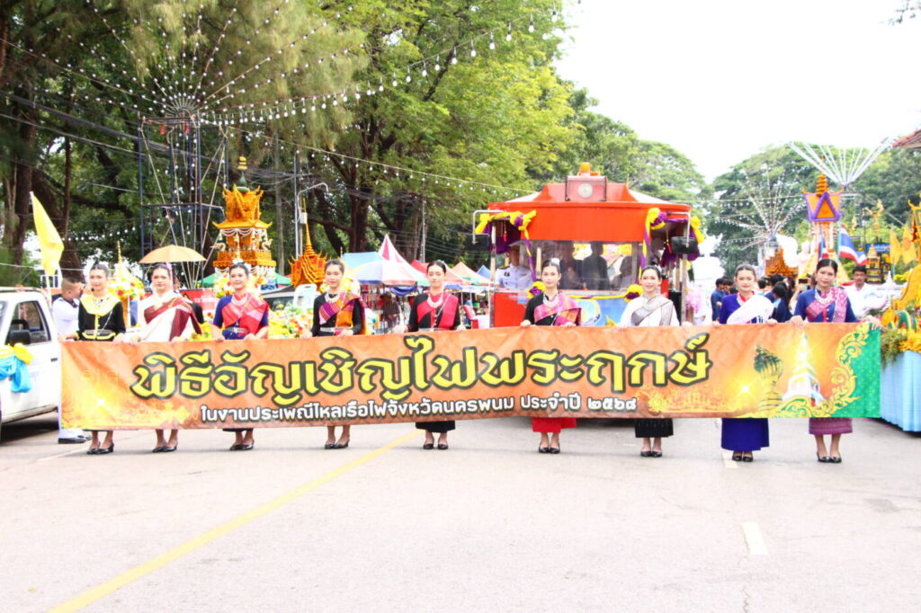 การร่วมพิธีอัญเชิญไฟพระฤกษ์ ในงานประเพณีไหลเรือไฟ จังหวัดนครพนม ประจำปี 2568