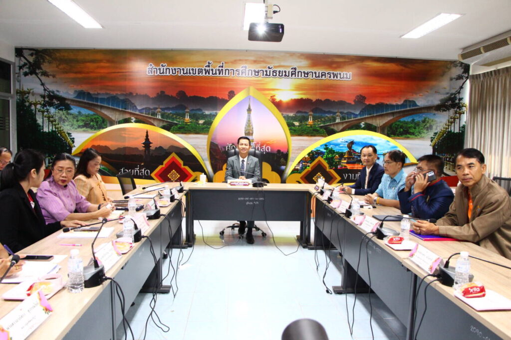 วันพฤหัสบดีที่ 9 ตุลาคม 2568 เวลา 08.00 น. ดร.พิศุทธิ์ กิติศรีวรพันธ์ุ ผอ.สพม.นครพนม พร้อมด้วย นายฉัตรชัย ไชยมงค์ รอง ผอ.สพม.นครพนม ผู้อำนวยการกลุ่มทุกกลุ่ม และศึกษานิเทศก์ เข้าร่วมรับชมรายการ “พฤหัสเช้าข่าว สพฐ.” เพื่อรับนโยบายการบริหารการศึกษา และนโยบายพัฒนาคุณภาพการศึกษาโรงเรียนในสังกัด ณ ห้องประชุมกันเกรา สพม.นครพนม