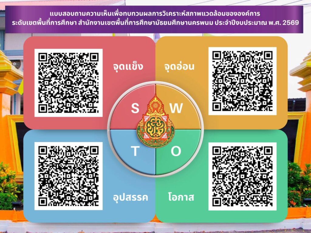 แบบสอบถามความเห็นเพื่อทบทวนผลการวิเคราะห์สภาพแวดล้อมขององค์การ ระดับเขตพื้นที่การศึกษา สำนักงานเขตพื้นที่การศึกษามัธยมศึกษานครพนม ประเด็นจุดแข็ง (Strengths) ประจำปีงบประมาณ พ.ศ. 2569