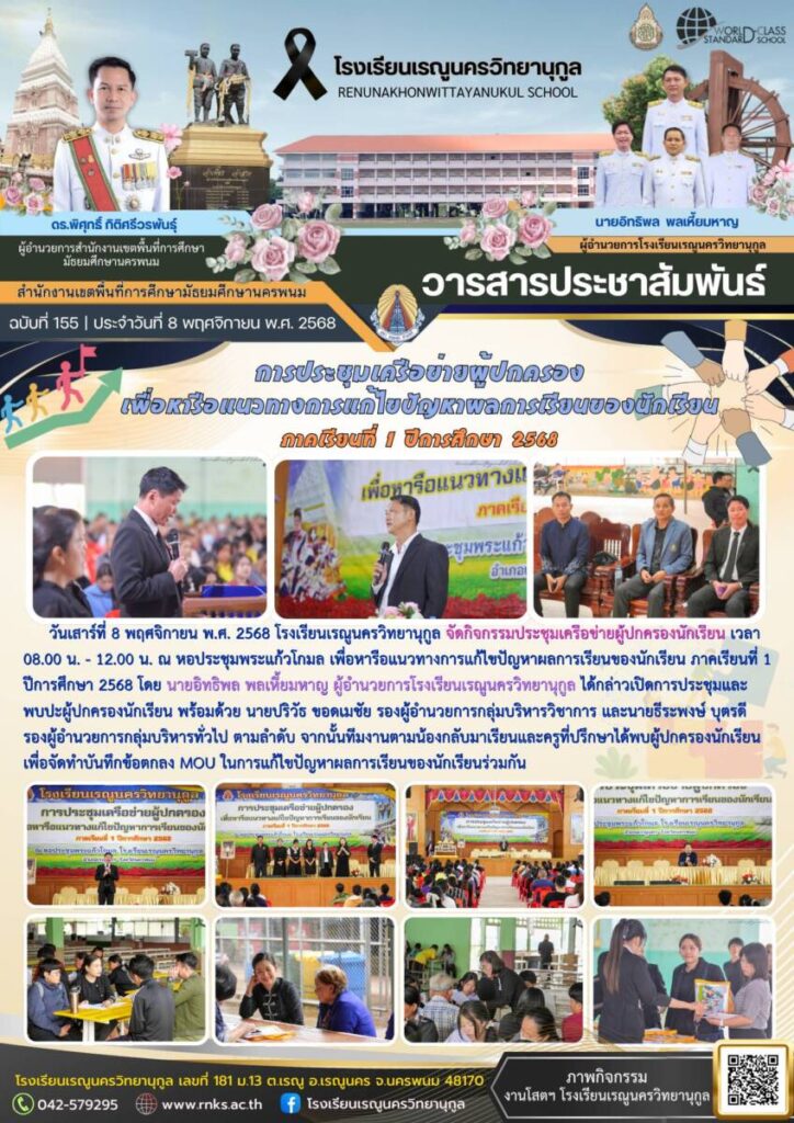 ข่าวประชาสัมพันธ์โรงเรียนเรณูนครวิทยานุกูลฉบับที่ 155/2568 / จดหมายข่าวโรงเรียนในสังกัด / By โรงเรียนเรณูนครวิทยานุกูล - / 13 พฤศจิกายน 2025 จำนวนคนดู : 2