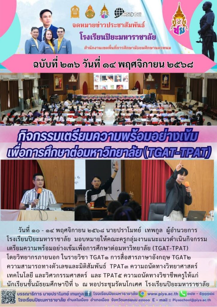 ปิยะมหาราชาลัย ฉบับที่ 236/68 / จดหมายข่าวโรงเรียนในสังกัด / By โรงเรียนปิยะมหาราชาลัย / 17 พฤศจิกายน 2025 จำนวนคนดู : 0