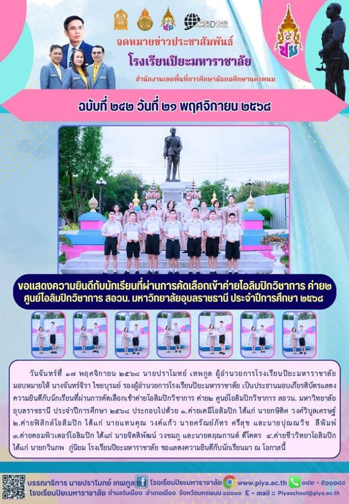 ปิยะมหาราชาลัย ฉบับที่ 242/68 / จดหมายข่าวโรงเรียนในสังกัด / By โรงเรียนปิยะมหาราชาลัย / 24 พฤศจิกายน 2025 จำนวนคนดู : 0