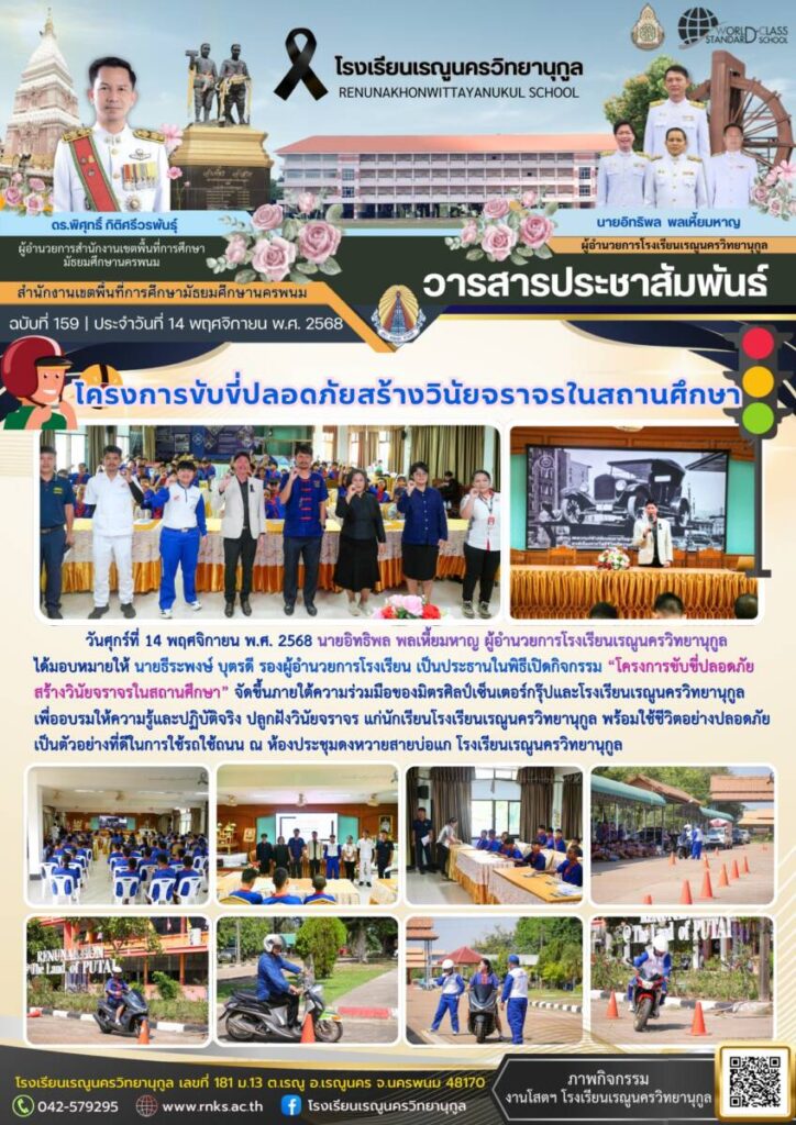 ข่าวประชาสัมพันธ์โรงเรียนเรณูนครวิทยานุกูลฉบับที่ 159/2568 / จดหมายข่าวโรงเรียนในสังกัด / By โรงเรียนเรณูนครวิทยานุกูล - / 28 พฤศจิกายน 2025 จำนวนคนดู : 0