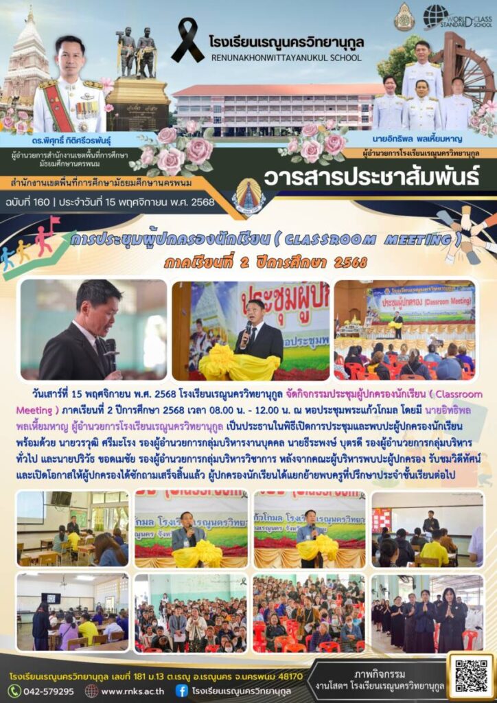 ข่าวประชาสัมพันธ์โรงเรียนเรณูนครวิทยานุกูลฉบับที่ 160/2568 / จดหมายข่าวโรงเรียนในสังกัด / By โรงเรียนเรณูนครวิทยานุกูล - / 28 พฤศจิกายน 2025 จำนวนคนดู : 0