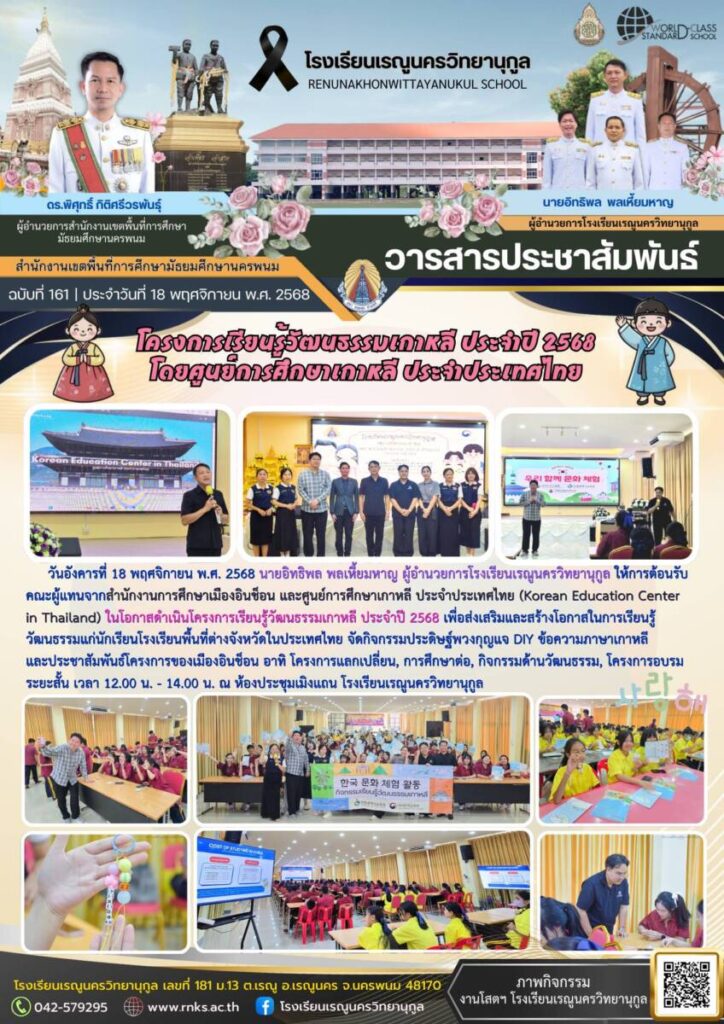 ข่าวประชาสัมพันธ์โรงเรียนเรณูนครวิทยานุกูลฉบับที่ 161/2568 / จดหมายข่าวโรงเรียนในสังกัด / By โรงเรียนเรณูนครวิทยานุกูล - / 28 พฤศจิกายน 2025 จำนวนคนดู : 0