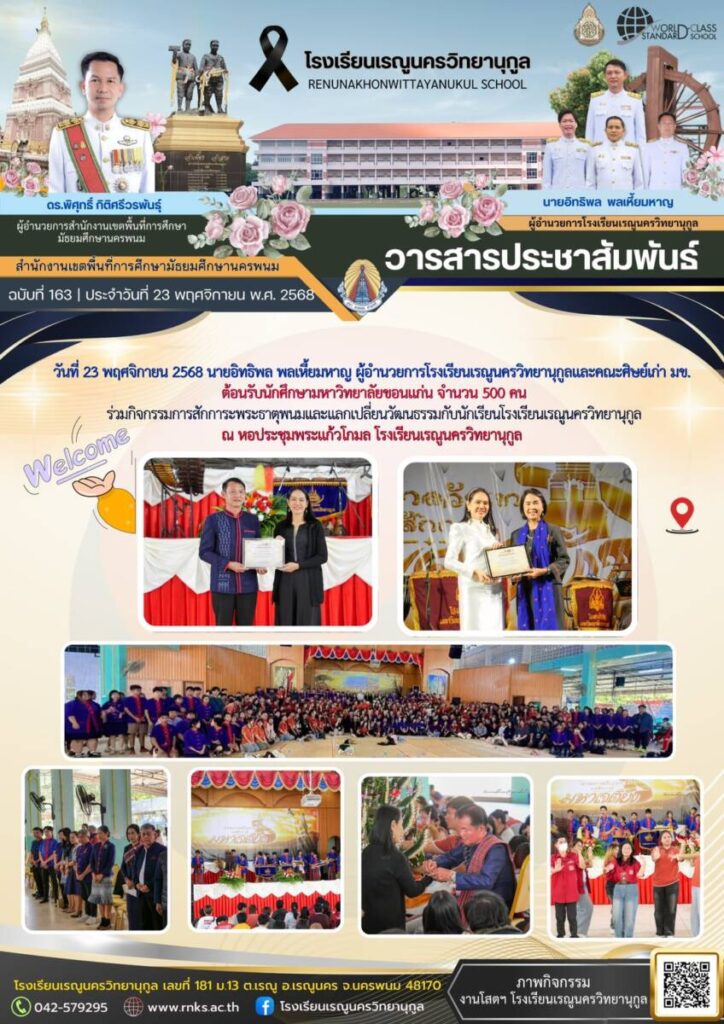 ข่าวประชาสัมพันธ์โรงเรียนเรณูนครวิทยานุกูลฉบับที่ 163/2568 / จดหมายข่าวโรงเรียนในสังกัด / By โรงเรียนเรณูนครวิทยานุกูล - / 28 พฤศจิกายน 2025 จำนวนคนดู : 0