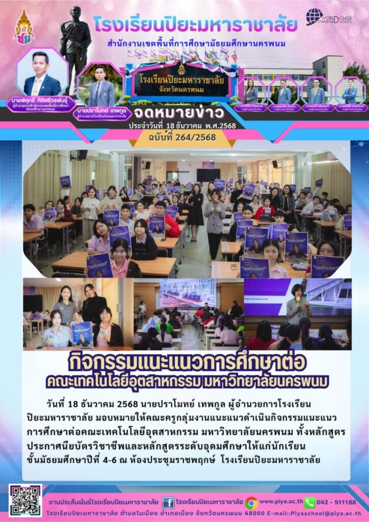 ปิยะมหาราชาลัย ฉบับที่ 264/68 / จดหมายข่าวโรงเรียนในสังกัด / By โรงเรียนปิยะมหาราชาลัย / 19 ธันวาคม 2025 จำนวนคนดู : 0