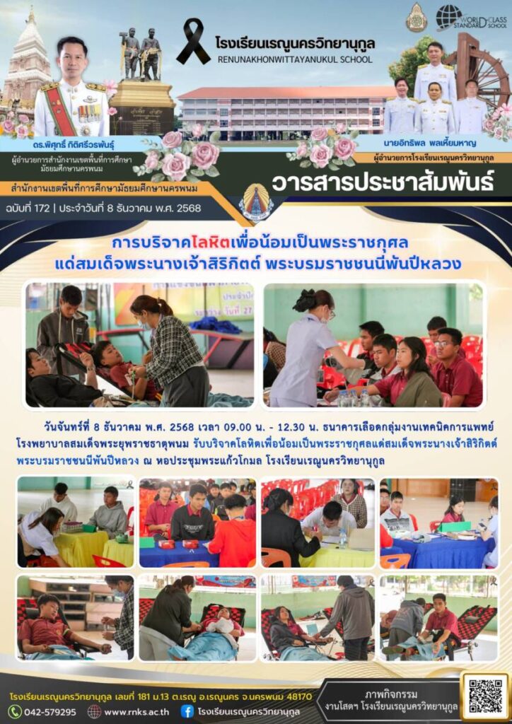 ข่าวประชาสัมพันธ์โรงเรียนเรณูนครวิทยานุกูลฉบับที่ 172/2568 / จดหมายข่าวโรงเรียนในสังกัด / By โรงเรียนเรณูนครวิทยานุกูล - / 31 ธันวาคม 2025 จำนวนคนดู : 0