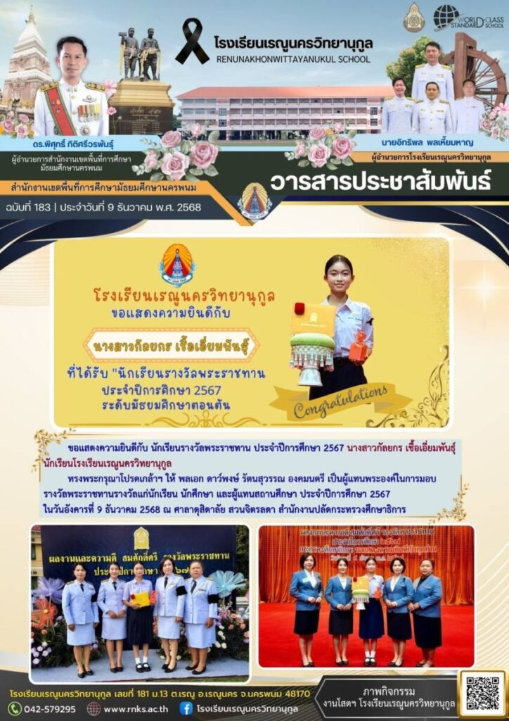 ข่าวประชาสัมพันธ์โรงเรียนเรณูนครวิทยานุกูลฉบับที่ 183/2568 / จดหมายข่าวโรงเรียนในสังกัด / By โรงเรียนเรณูนครวิทยานุกูล - / 31 ธันวาคม 2025 จำนวนคนดู : 0