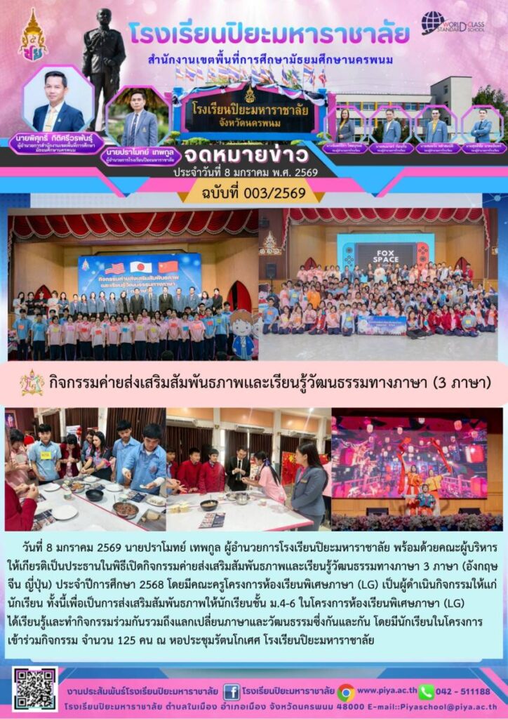 ปิยะมหาราชาลัย ฉบับที่ 003/69 / จดหมายข่าวโรงเรียนในสังกัด / By โรงเรียนปิยะมหาราชาลัย / 12 มกราคม 2026 จำนวนคนดู : 0