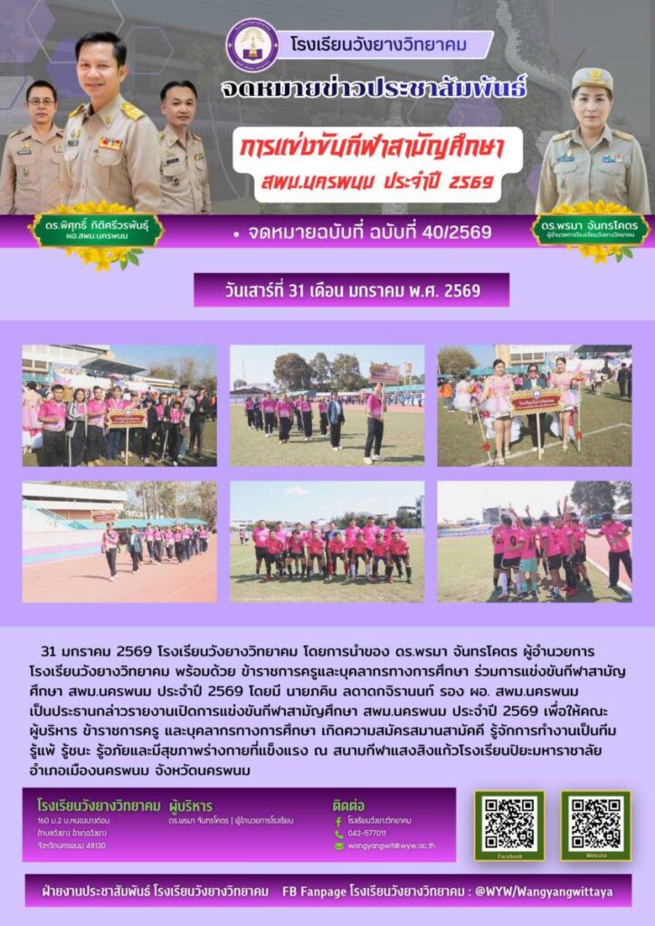 โรงเรียนวังยางวิทยาคม ฉบับที่ 40/2569