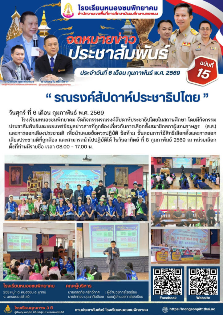 / จดหมายข่าวโรงเรียนในสังกัด / By โรงเรียนหนองซนพิทยาคม - / 19 กุมภาพันธ์ 2026