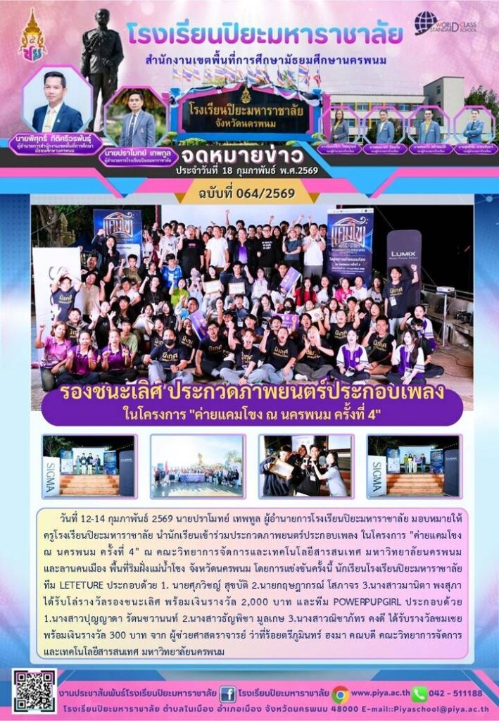 โรงเรียนปิยะมหาราชาลัย ฉบับที่ 64/69 / จดหมายข่าวโรงเรียนในสังกัด / By โรงเรียนปิยะมหาราชาลัย / 23 กุมภาพันธ์ 2026 จำนวนคนดู : 0