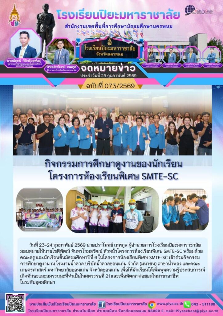 ปิยะมหาราชาลัย ฉบับที่ 73/69 / จดหมายข่าวโรงเรียนในสังกัด / By โรงเรียนปิยะมหาราชาลัย / 4 มีนาคม 2026 จำนวนคนดู : 0