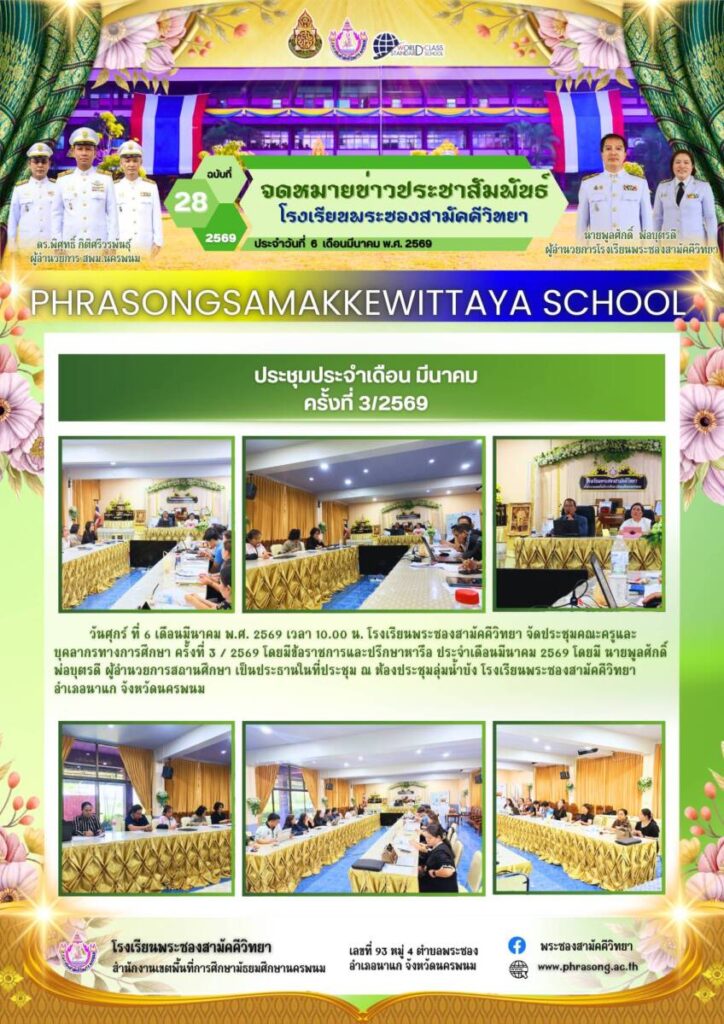 ข่าวประชาสัมพันธ์ โรงเรียนพระซองสามัคคีวิทยา ฉบับที่ 28/2569 / จดหมายข่าวโรงเรียนในสังกัด / By โรงเรียนพระซองสามัคคีวิทยา - / 13 มีนาคม 2026 จำนวนคนดู : 0