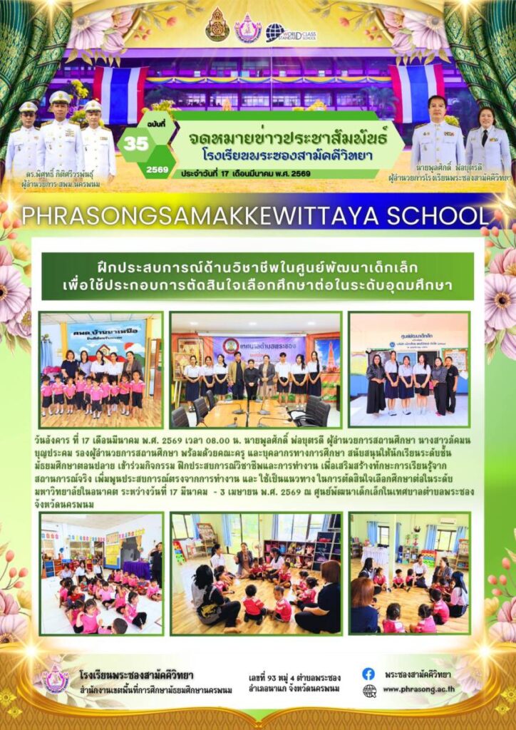 ข่าวประชาสัมพันธ์ โรงเรียนพระซองสามัคคีวิทยา ฉบับที่ 35/2569 / จดหมายข่าวโรงเรียนในสังกัด / By โรงเรียนพระซองสามัคคีวิทยา - / 23 มีนาคม 2026 จำนวนคนดู : 0