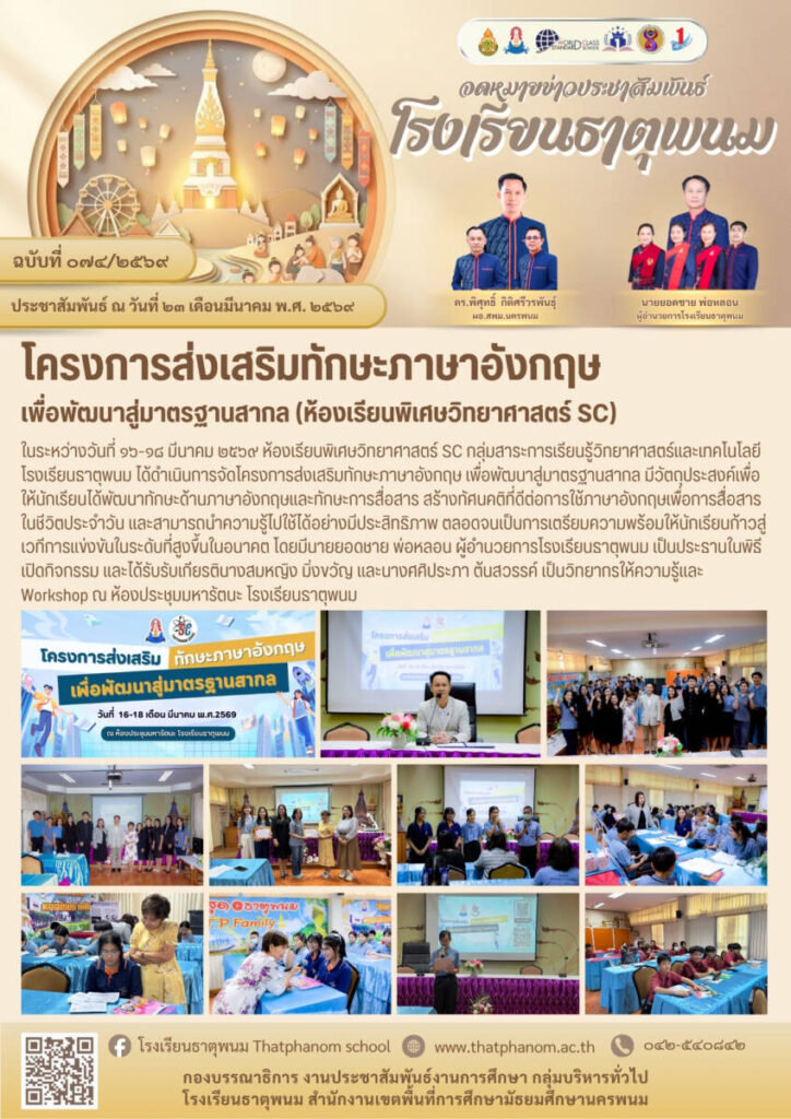 ข่าวประชาสัมพันธ์โรงเรียนธาตุพนม / จดหมายข่าวโรงเรียนในสังกัด / By โรงเรียนธาตุพนม - / 23 มีนาคม 2026 จำนวนคนดู : 0