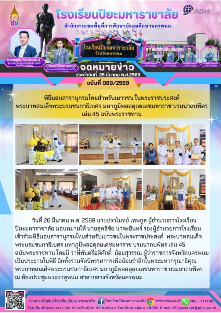 ปิยะมหาราชาลัย ฉบับที่ 89/69 / จดหมายข่าวโรงเรียนในสังกัด / By โรงเรียนปิยะมหาราชาลัย / 27 มีนาคม 2026 จำนวนคนดู : 0