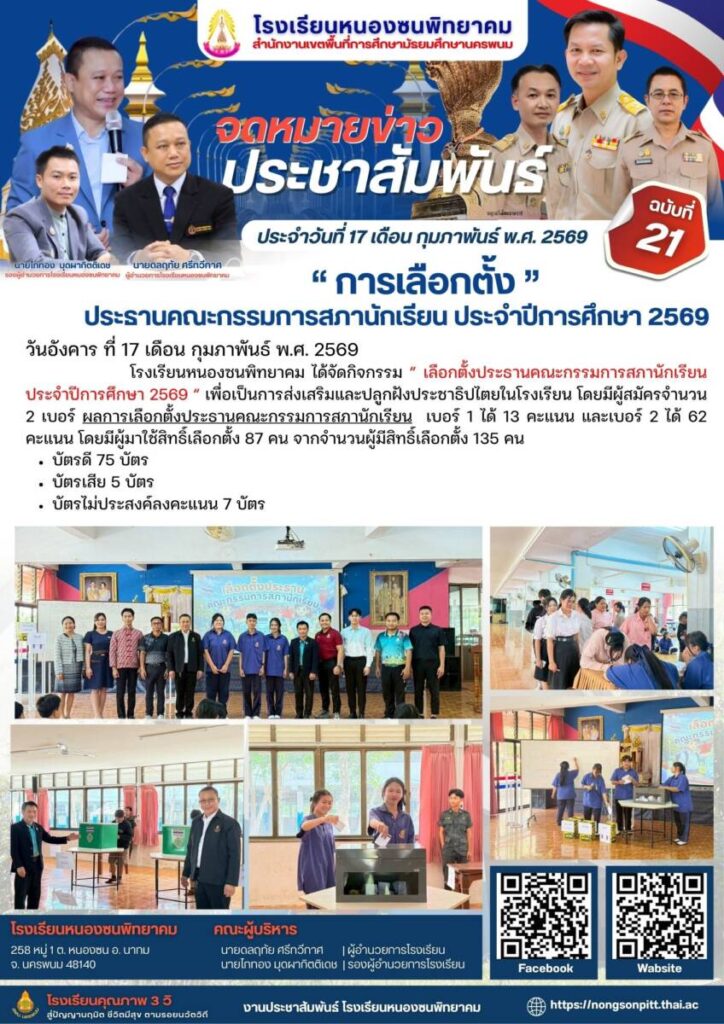 หนองซนพิทยาคม ฉบับที่ 21/2569 / จดหมายข่าวโรงเรียนในสังกัด / By โรงเรียนหนองซนพิทยาคม - / 3 เมษายน 2026 จำนวนคนดู : 0