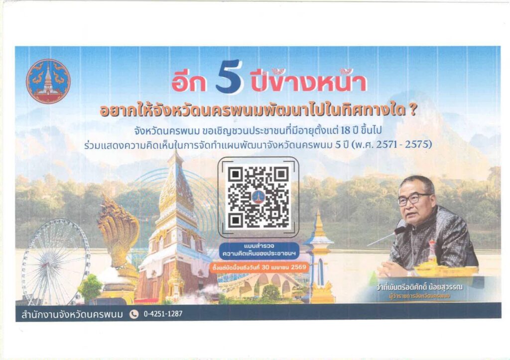การสำรวจความคิดเห็นของประชาชนในจังหวัด เพื่อการจัดทำแผนพัฒนาจังหวัดนครพนม พ.ศ. 2571 – 2575 ผ่านระบบออนไลน์