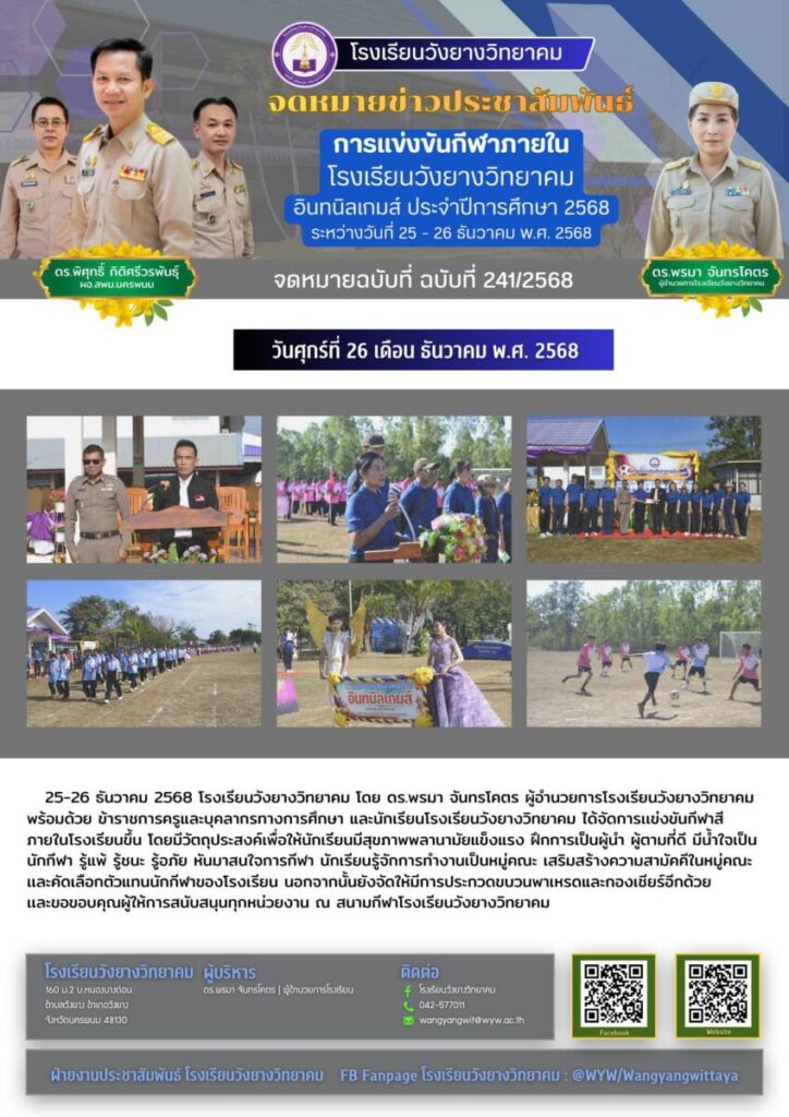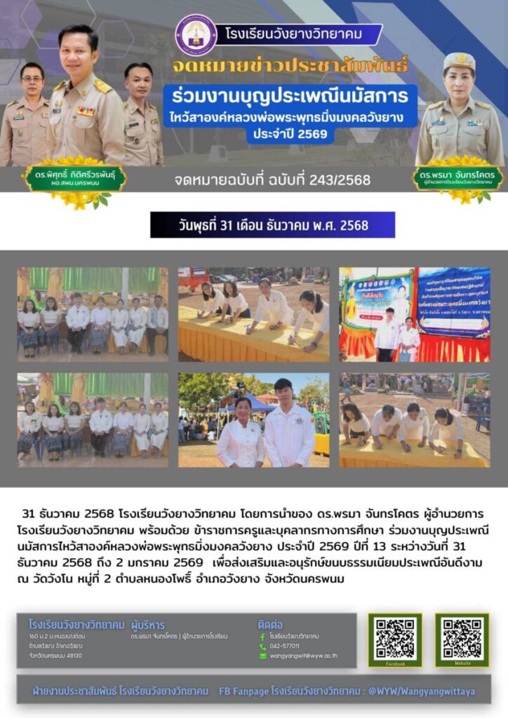 จดหมายข่าวโรงเรียนในสังกัด โรงเรียนวังยางวิทยาคม ฉบับที่ 3/2569 8 มกราคม 2026 7 มกราคม 2569 โรงเรียนวัง ปิยะมหาราชาลัย ฉบับที่ 002/69 8 มกราคม 2026 ข่าวประชาสัมพันธ์โรงเรียนธรรมโฆษิตวิทยา 8 มกราคม 2026 โรงเรียนวังยางวิทยาคม ฉบับที่ 2/2569 8 มกราคม 2026 5 มกราคม 2569 โรงเรียนวัง โรงเรียนวังยางวิทยาคม ฉบับที่ 1/2569 8 มกราคม 2026 5 มกราคม 2569 โรงเรียนวัง ปิยะมหาราชาลัย ฉบับที่ 001/69 6 มกราคม 2026 ปิยะมหาราชาลัย ฉบับที่ 267/68 6 มกราคม 2026 ข่าวประชาสัมพันธ์โรงเรียนเรณูนครวิทยานุกูลฉบับที่ 184/2568 31 ธันวาคม 2025 ข่าวประชาสัมพันธ์โรงเรียนเรณูนครวิทยานุกูลฉบับที่ 183/2568 31 ธันวาคม 2025 ข่าวประชาสัมพันธ์โรงเรียนเรณูนครวิทยานุกูลฉบับที่ 182/2568 31 ธันวาคม 2025 ข่าวประชาสัมพันธ์โรงเรียนเรณูนครวิทยานุกูลฉบับที่ 181/2568 31 ธันวาคม 2025 ข่าวประชาสัมพันธ์โรงเรียนเรณูนครวิทยานุกูลฉบับที่ 179/2568 31 ธันวาคม 2025 ข่าวประชาสัมพันธ์โรงเรียนเรณูนครวิทยานุกูลฉบับที่ 176/2568 31 ธันวาคม 2025 ข่าวประชาสัมพันธ์โรงเรียนเรณูนครวิทยานุกูลฉบับที่ 175/2568 31 ธันวาคม 2025 ข่าวประชาสัมพันธ์โรงเรียนเรณูนครวิทยานุกูลฉบับที่ 174/2568 31 ธันวาคม 2025 ข่าวประชาสัมพันธ์โรงเรียนเรณูนครวิทยานุกูลฉบับที่ 173/2568 31 ธันวาคม 2025 ข่าวประชาสัมพันธ์โรงเรียนเรณูนครวิทยานุกูลฉบับที่ 172/2568 31 ธันวาคม 2025 ข่าวประชาสัมพันธ์โรงเรียนเรณูนครวิทยานุกูลฉบับที่ 169/2568 31 ธันวาคม 2025 โรงเรียนวังยางวิทยาคม ฉบับที่ 243/2568 31 ธันวาคม 2025 31 ธันวาคม 2568 โรงเรียนว โรงเรียนวังยางวิทยาคม ฉบับที่ 242/2568 30 ธันวาคม 2025 26 ธันวาคม 2568 โรงเรียนว โรงเรียนวังยางวิทยาคม ฉบับที่ 241/2568 30 ธันวาคม 2025 25-26 ธันวาคม 2568 โรงเรี โรงเรียนวังยางวิทยาคม ฉบับที่ 240/2568 30 ธันวาคม 2025 25 ธันวาคม 2568 โรงเรียนว โรงเรียนวังยางวิทยาคม ฉบับที่ 239/2568 30 ธันวาคม 2025 25 ธันวาคม 2568 โรงเรียนว โรงเรียนวังยางวิทยาคม ฉบับที่ 238/2568 30 ธันวาคม 2025 25 ธันวาคม 2568 โรงเรียนว ข่าวประชาสัมพันธ์โรงเรียนธาตุพนม 25 ธันวาคม 2025 ข่าวประชาสัมพันธ์โรงเรียนธาตุพนม 25 ธันวาคม 2025 ข่าวประชาสัมพันธ์โรงเรียนธรรมโฆษิตวิทยา 24 ธันวาคม 2025 ข่าวประชาสัมพันธ์โรงเรียนธรรมโฆษิตวิทยา 24 ธันวาคม 2025 ข่าวประชาสัมพันธ์ โรงเรียนพระซองสามัคคีวิทยา ฉบับที่180/2568 24 ธันวาคม 2025 โรงเรียนวังยางวิทยาคม ฉบับที่ 237/2568 24 ธันวาคม 2025 23 ธันวาคม 2568 โรงเรียนว « Previous Page1 Page2 Page3 Page4 Page5 Next »