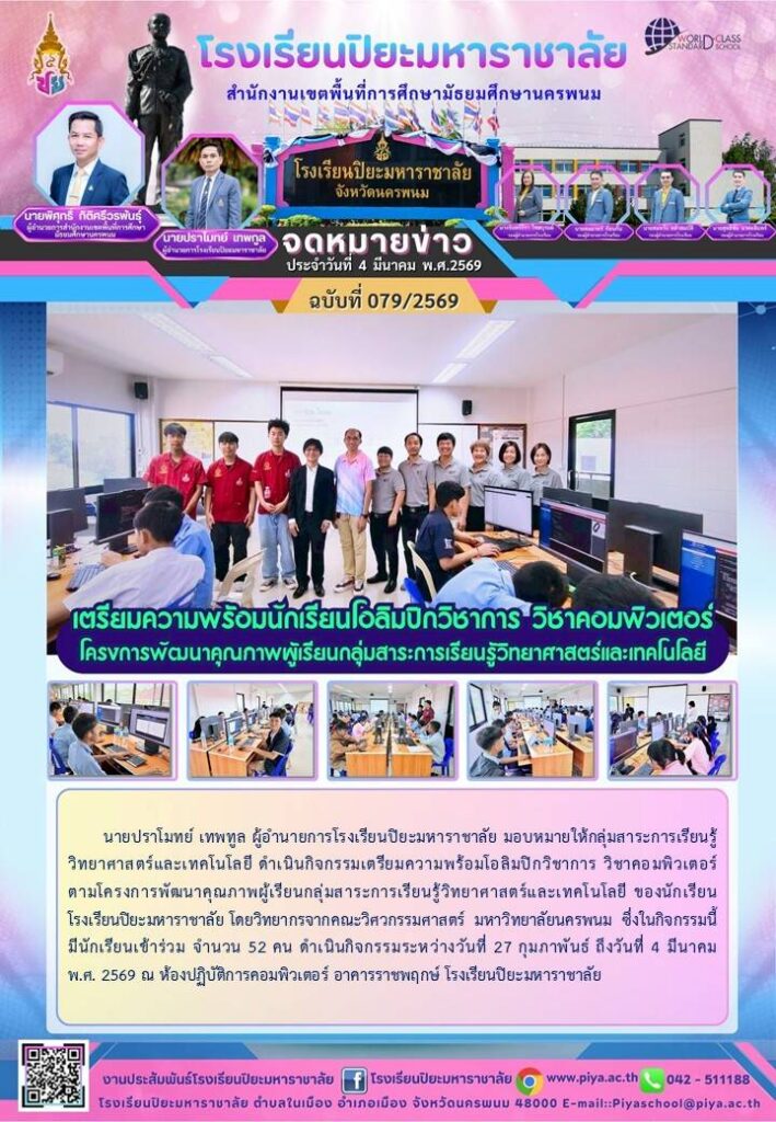 จดหมายข่าวโรงเรียนในสังกัด ปิยะมหาราชาลัย ฉบับที่ 011/69 14 มกราคม 2026 ปิยะมหาราชาลัย ฉบับที่ 010/69 14 มกราคม 2026 ปิยะมหาราชาลัย ฉบับที่ 009/69 14 มกราคม 2026 ข่าวประชาสัมพันธ์ โรงเรียนพระซองสามัคคีวิทยา ฉบับที่ 3/2569 14 มกราคม 2026 ข่าวประชาสัมพันธ์ โรงเรียนพระซองสามัคคีวิทยา ฉบับที่ 2/2569 14 มกราคม 2026 ข่าวประชาสัมพันธ์ โรงเรียนพระซองสามัคคีวิทยา ฉบับที่1/2569 14 มกราคม 2026 โรงเรียนวังยางวิทยาคม ฉบับที่ 9/2569 14 มกราคม 2026 12 มกราคม 2568 โรงเรียนวั โรงเรียนวังยางวิทยาคม ฉบับที่ 8/2569 13 มกราคม 2026 12 มกราคม 2569 โรงเรียนวั โรงเรียนวังยางวิทยาคม ฉบับที่ 7/2569 13 มกราคม 2026 12 มกราคม 2569 โรงเรียนวั ปิยะมหาราชาลัย ฉบับที่ 008/69 13 มกราคม 2026 ปิยะมหาราชาลัย ฉบับที่ 007/69 13 มกราคม 2026 ปิยะมหาราชาลัย ฉบับที่ 006/69 13 มกราคม 2026 ปิยะมหาราชาลัย ฉบับที่ 005/69 13 มกราคม 2026 โรงเรียนวังยางวิทยาคม ฉบับที่ 5/2569 12 มกราคม 2026 9 มกราคม 2569 โรงเรียนวัง โรงเรียนวังยางวิทยาคม ฉบับที่ 4/2569 12 มกราคม 2026 9 มกราคม 2569 โรงเรียนวัง ร่วมสนับสนุนกิจกรรมวันเด็ก 12 มกราคม 2026 ข่าวประชาสัมพันธ์โรงเรียนธาตุพนม 12 มกราคม 2026 ข่าวประชาสัมพันธ์โรงเรียนธาตุพนม 12 มกราคม 2026 ข่าวประชาสัมพันธ์โรงเรียนธาตุพนม 12 มกราคม 2026 ปิยะมหาราชาลัย ฉบับที่ 004/69 12 มกราคม 2026 ปิยะมหาราชาลัย ฉบับที่ 003/69 12 มกราคม 2026 โรงเรียนวังยางวิทยาคม ฉบับที่ 3/2569 8 มกราคม 2026 7 มกราคม 2569 โรงเรียนวัง ปิยะมหาราชาลัย ฉบับที่ 002/69 8 มกราคม 2026 ข่าวประชาสัมพันธ์โรงเรียนธรรมโฆษิตวิทยา 8 มกราคม 2026 โรงเรียนวังยางวิทยาคม ฉบับที่ 2/2569 8 มกราคม 2026 5 มกราคม 2569 โรงเรียนวัง โรงเรียนวังยางวิทยาคม ฉบับที่ 1/2569 8 มกราคม 2026 5 มกราคม 2569 โรงเรียนวัง ปิยะมหาราชาลัย ฉบับที่ 001/69 6 มกราคม 2026 ปิยะมหาราชาลัย ฉบับที่ 267/68 6 มกราคม 2026 ข่าวประชาสัมพันธ์โรงเรียนเรณูนครวิทยานุกูลฉบับที่ 184/2568 31 ธันวาคม 2025 ข่าวประชาสัมพันธ์โรงเรียนเรณูนครวิทยานุกูลฉบับที่ 183/2568 31 ธันวาคม 2025 « Previous Page1 Page2 Page3 Page4 Page5 Next »